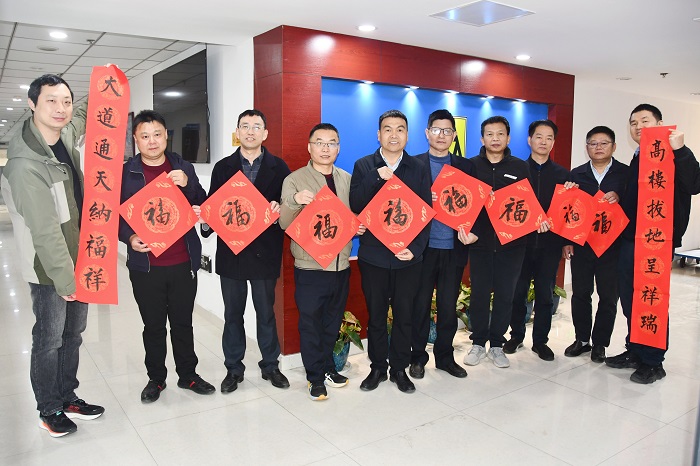 副队长陈全福亲自挥毫泼墨书写春联和福字,队党委书记陈耀带领大队领导班子成员,为二级单位送上福联福字,向广大职工传递新春的祝福与关怀,让大家在感受节日氛围的同时,进一步增强文化自信和单位归属感。(郑青)